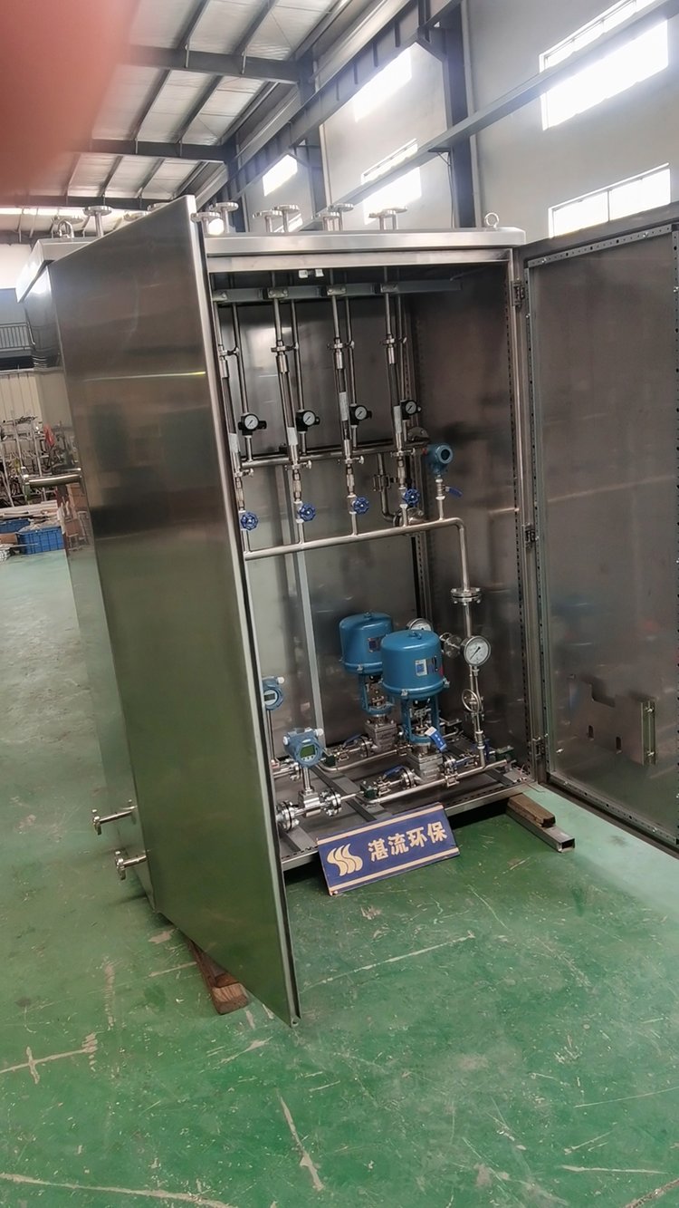 台炉一套计量混合模块,所有仪器仪表集中布置,布置在计量混合模块柜内。每台炉所需的稀释水在与氨水混合前由