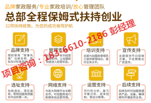 家事先锋家政合作各种家政服务服务,采用国内新兴家政服务设备和专用家政服务剂。家事先锋家政合作,投入资金少、易操作、无需店铺,流动经营,合作即可盈利!”家事先锋“提供整套设备、器具、运营模式和技术的正规培训,还有政府扶持。