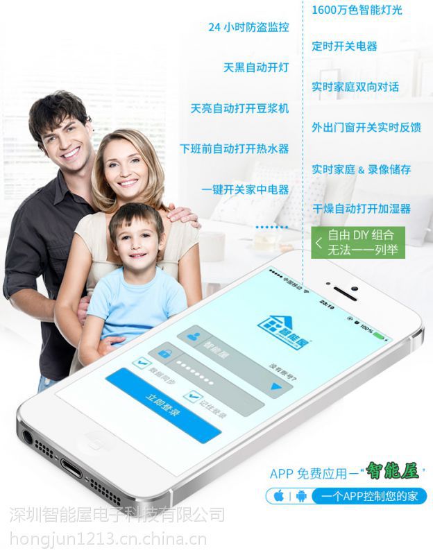 智能屋系统经过多年精心设计开发,整合了ip、 ir 、rf、gsm、zigbee在内的多种控制协议,可将任何独立的设备转换为网络智能设备,控制方式多元,可远程、可定时,独特开放的智能屋系统可以让每一台电脑/手机/平板都能成为您家中的万能遥控器,从而实现无线控制、定时控制、远程控制、所有家电设备包含;灯光照明、电动窗帘、安防报警、视频监控、智能门锁、电动门窗、家庭影院、背景音乐、自动车库门、空调、电视、新风、排气、吸尘、热水、净水、浇花、喂宠物等一系列智能化控制。只要是有网络的地方,就可以轻松操控家里的一切!,让家时刻在您生边,安心享受高科技带来的便捷与舒适生活!