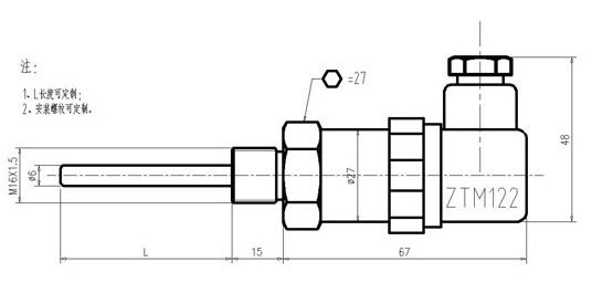 长度规格表示方式:l=保护管总长mm*插入长度mm