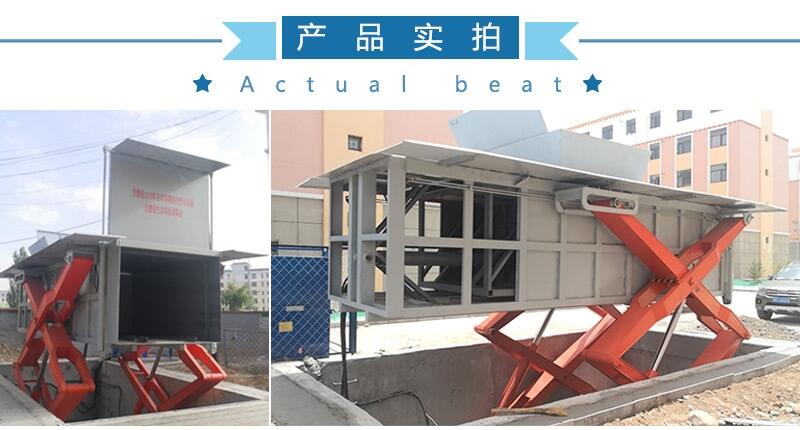 5、压缩完成后、整个地埋式垃圾站举升于地面以上与垃圾装载车进行对接,利用推杆装置将两大块垃圾推入车厢内,转运垃圾处理厂。