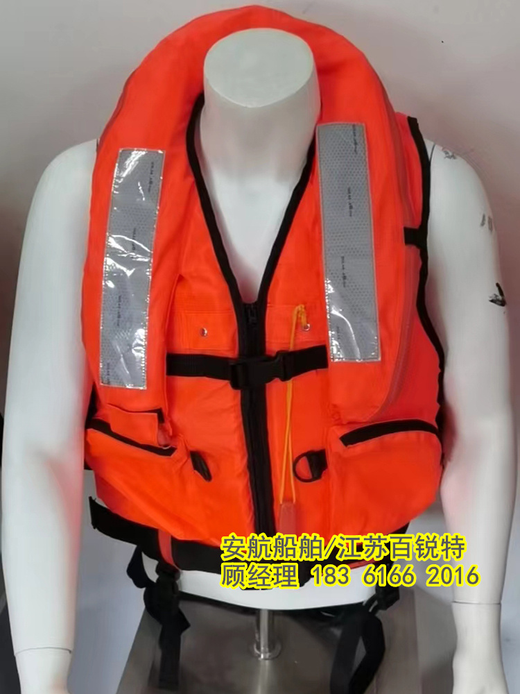 它由一个固有泡沫救生衣、一个TPU气室、手动充气装置、CO贮气瓶、外衣套和嘴吹气管组成,在遇险落水的紧急情况下,救他人时泡沫救生衣浮力达不到,拉动手动充气装置可在5秒钟的时间内对气室充气,使气室充气并形成浮力,以保证落水人员的安全。