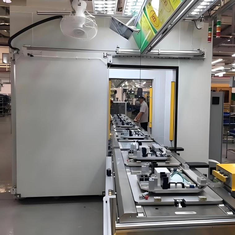 流水线贯穿隔音罩中心,两端配备气动隔音门。当产品进入隔音罩后,气动门关闭以隔离噪音;完成检测后,门体开启输送成品,同时下一件产品进入,实现高效循环检测。