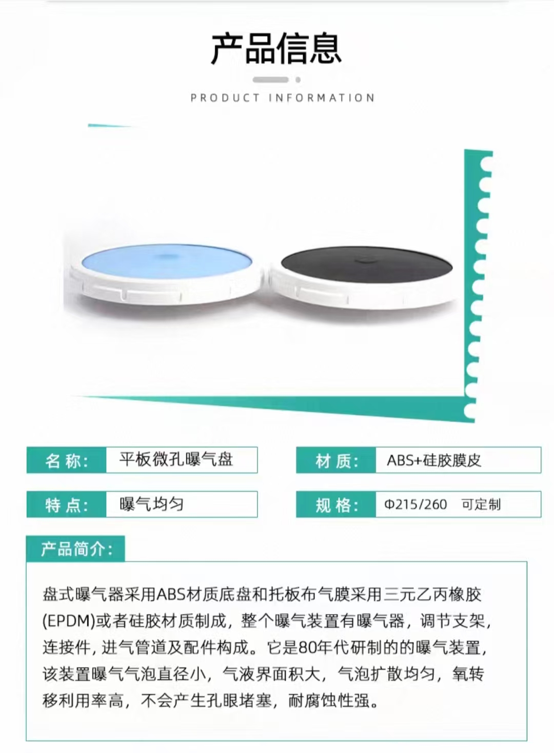 平板曝气器膜片微孔曝气头增氧污水处理设备橡胶进口平面爆气盘
