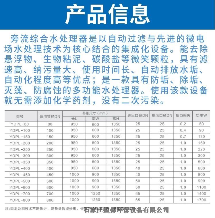 写字楼制冷循环水系统旁流水处理器 热交换旁流水处理器白城