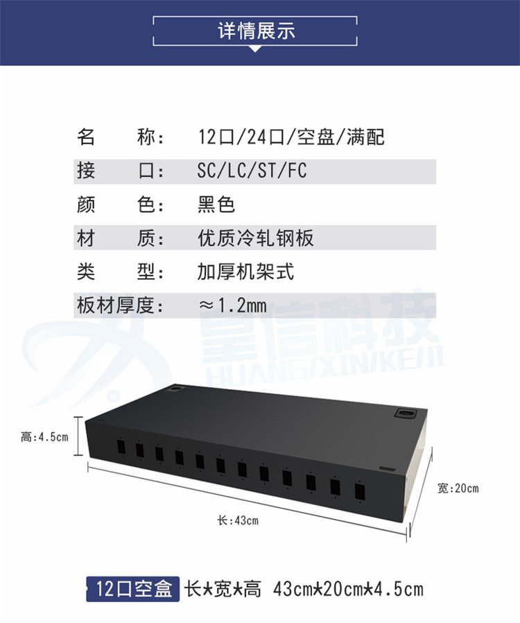 皇信桌面型光缆终端盒SC/FC/LC4口6口8口12口24口壁挂式光纤盒 品牌 | 皇信科技 | ||