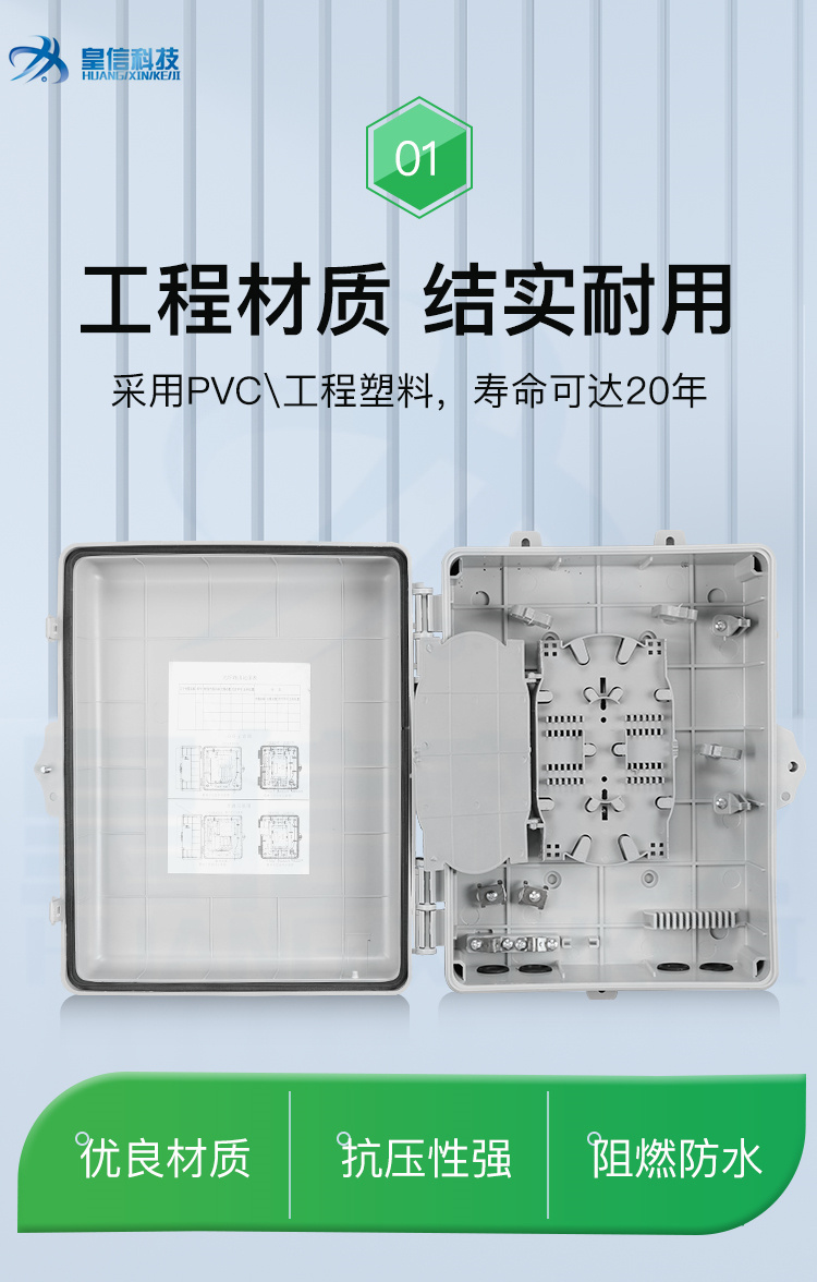 皇信光纤直熔箱24芯48芯72芯96芯144芯 室外壁挂/抱杆光缆分纤箱 材质塑料