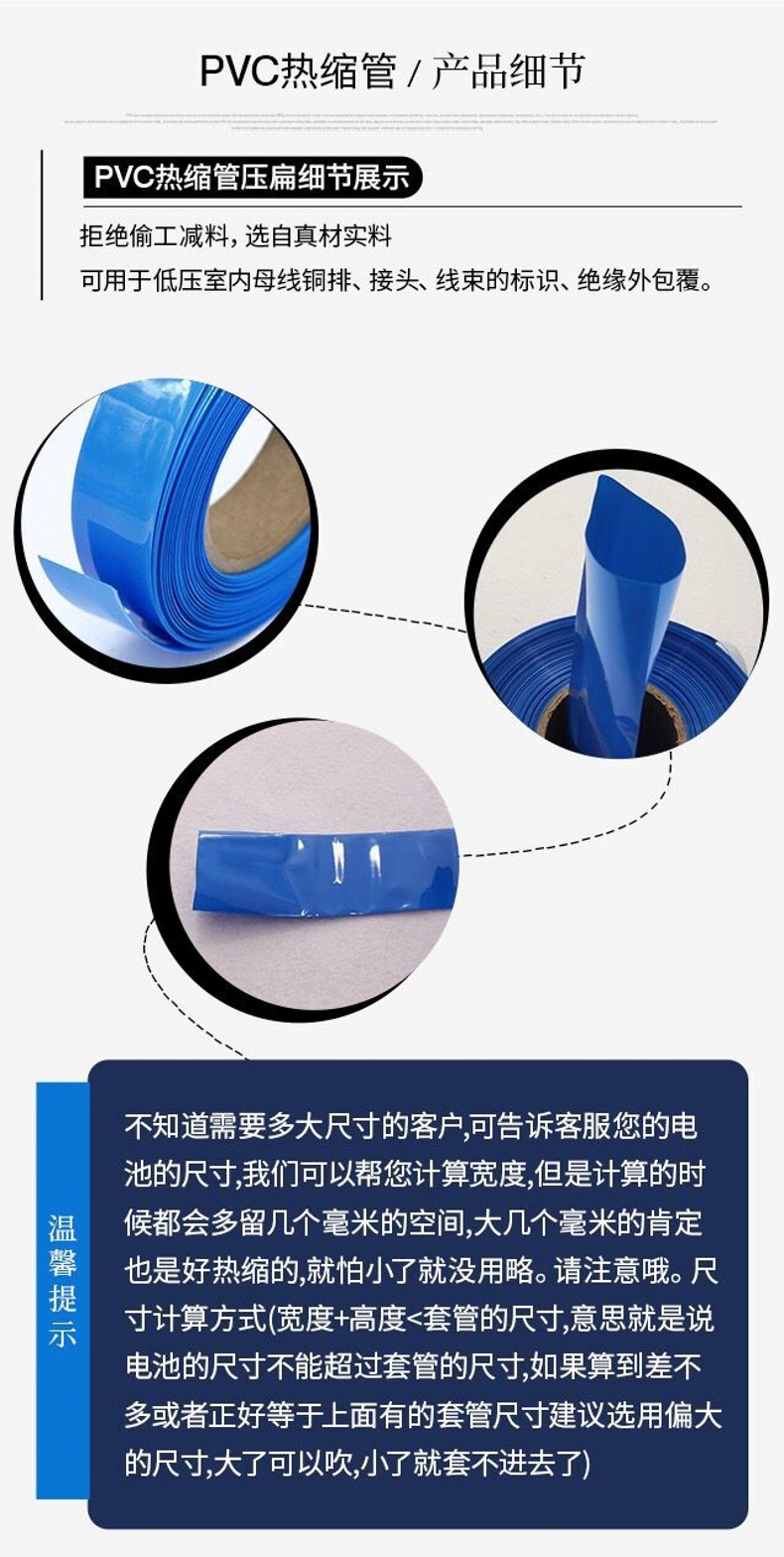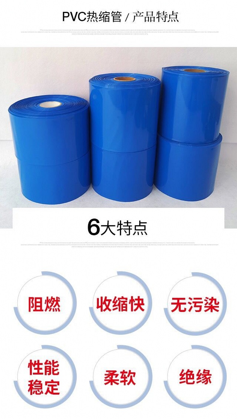 产销锂电池包装膜蓝色pvc热收缩膜两头通电池热缩膜绝缘套管膜