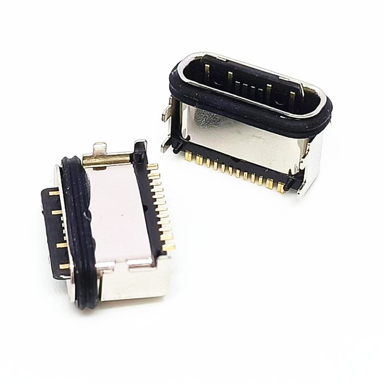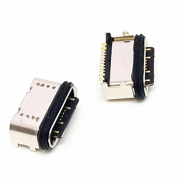 TYPEC16P防水母座短体5.590度四脚插板单排贴片有柱配胶圈