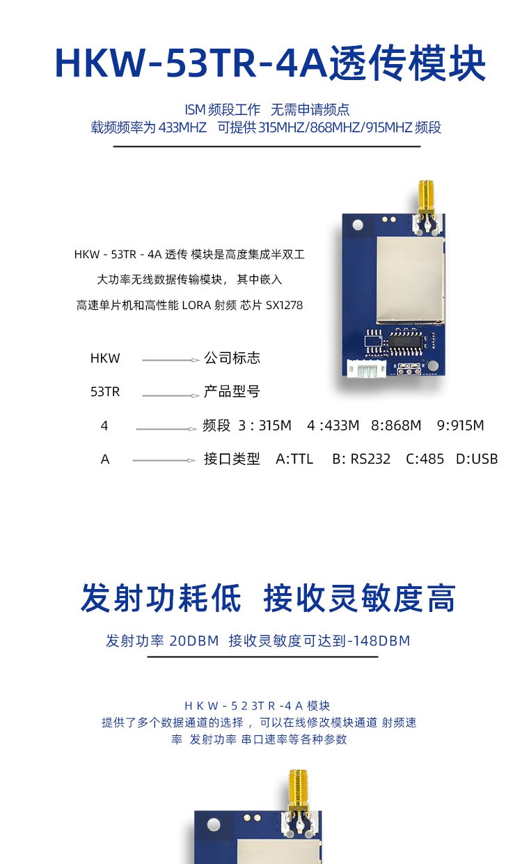 LORA无线模块433M串口透传通信 TTL/R232/RS485接口数传发射接收 品牌 | 华凯微 | ||