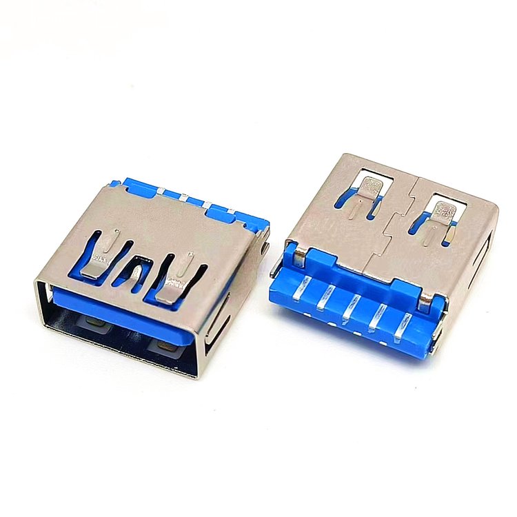 USB3.0AF焊线 超短体H=11.5mm 3.0A母焊线式 9PIN 直/卷边 蓝色胶芯 品牌 | 贝莱兴 | ||