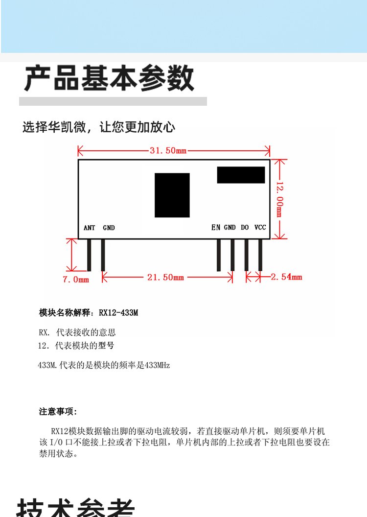 华凯微-超外差无线接收模块 315/433Mhz 智能家居遥控专用 品牌 | 华凯微 | ||