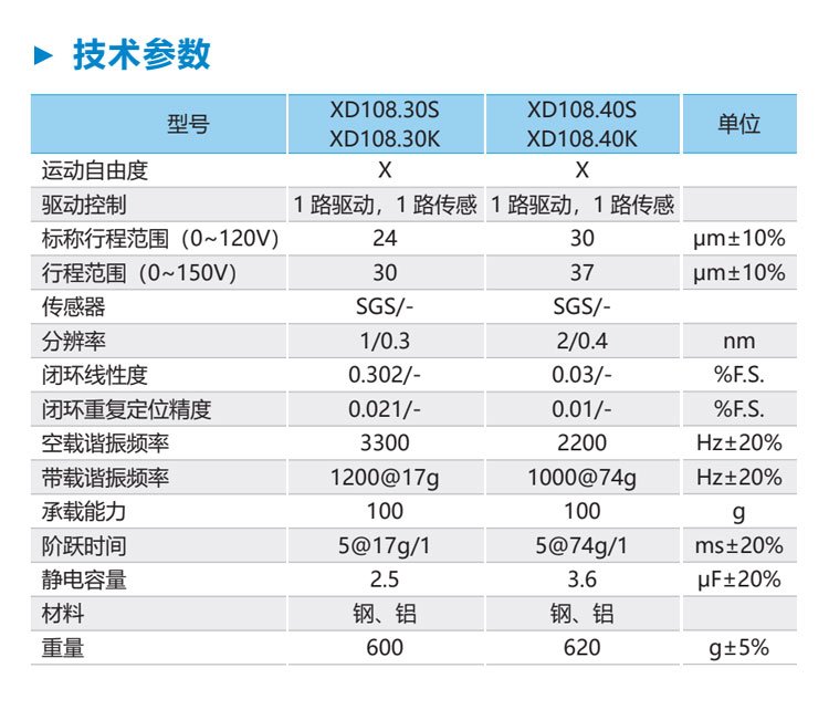 XD108系列压电扫描台采用无摩擦柔性铰链导向机构可实现37μm位移