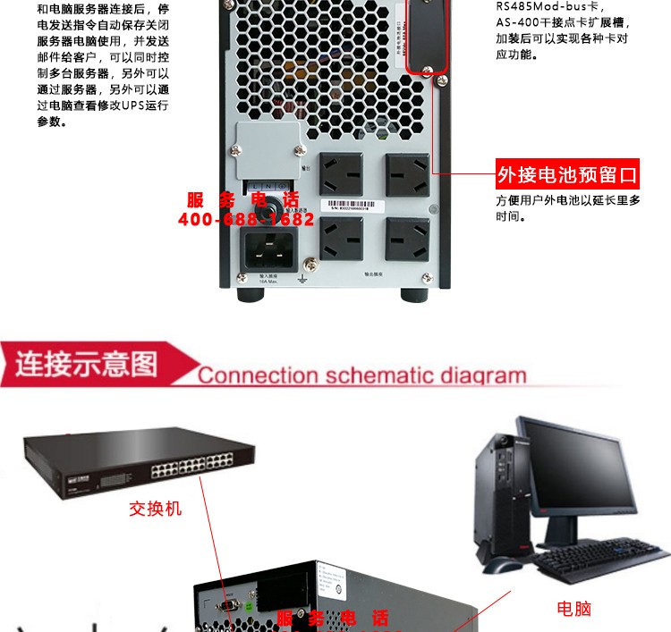 UPS不间断电源2000VA/1600W不含电池LCD塔式长效机USB/RS232 是否支持加工定制 | 否 | ||