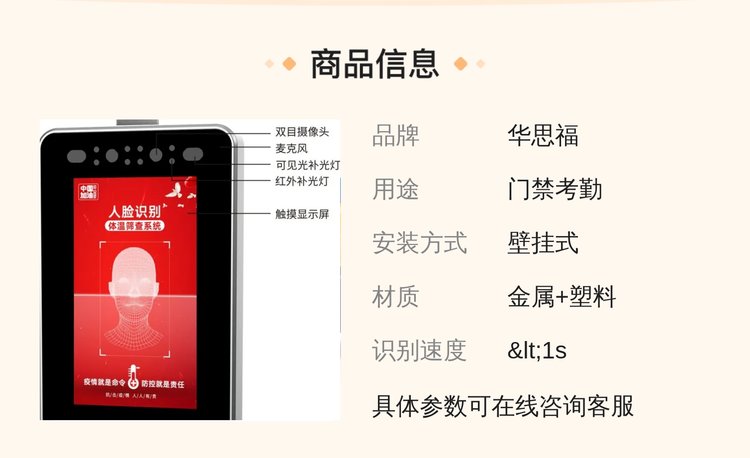 华思福人脸识别一体机测温可选配智能门禁厂家直销