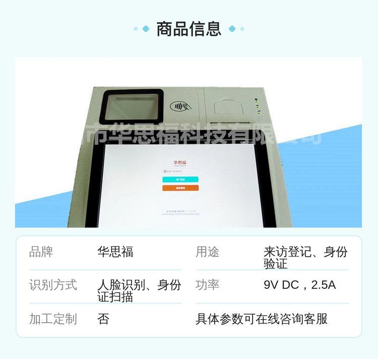 华思福人脸识别访客机一体机身份证扫描登记操作简便