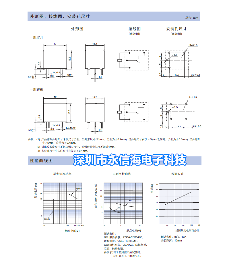● 外形尺寸:(19.0 x 15.2 x 15.5) mm
