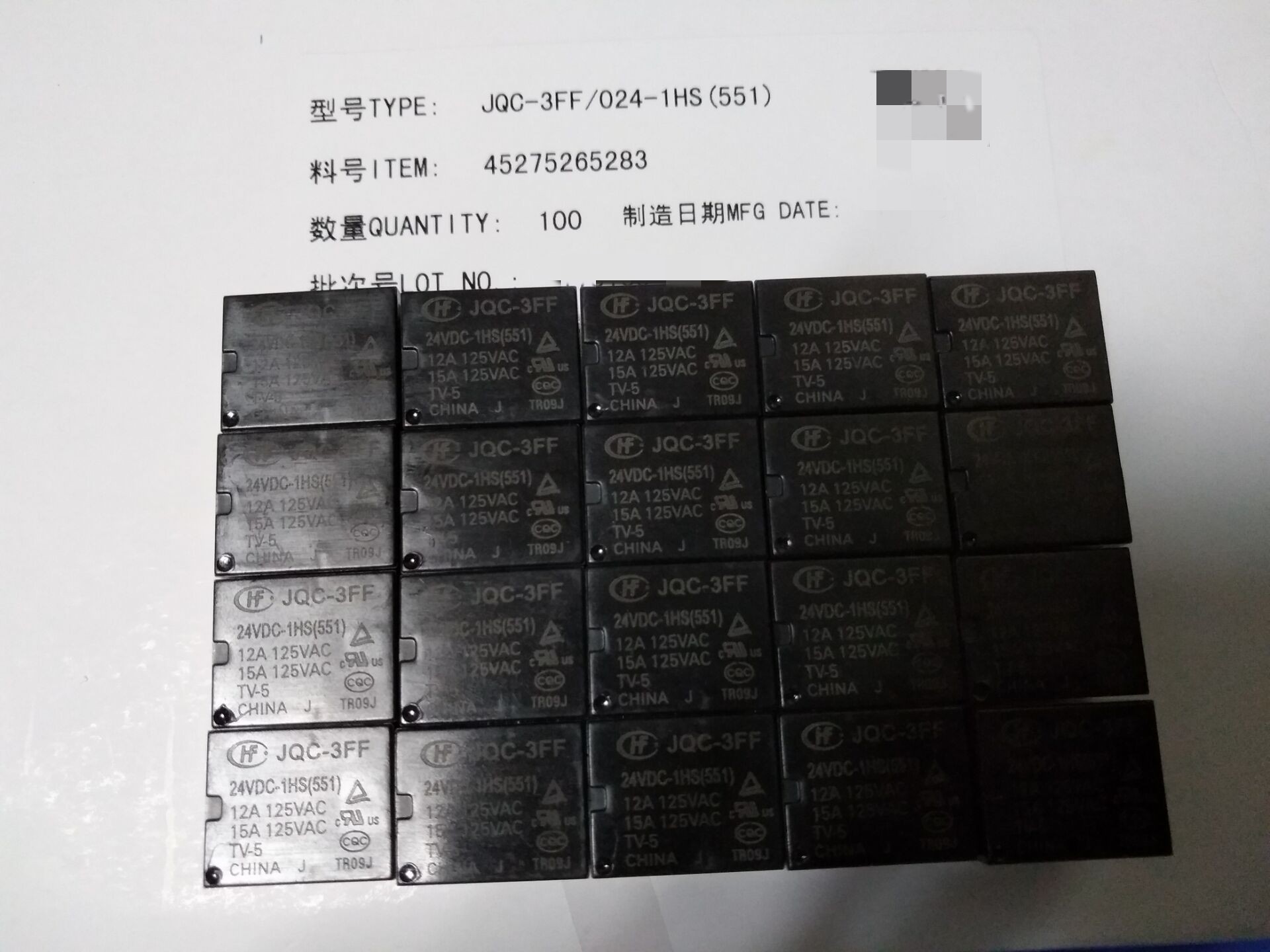 宏发一组敞开四脚10A电磁功率PCB安装家电用继电器JQC-3FF/24-1HS 颜色 | 黑色 | ||