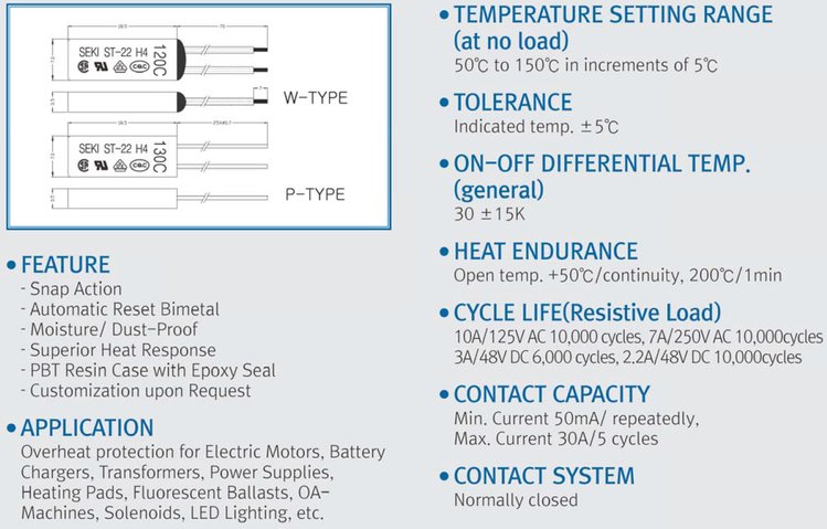 爱多 韩国世纪 SEKI ST-22 系列温控开关ST-22W/ST-22P热保护器 品牌 | SEKI | ||