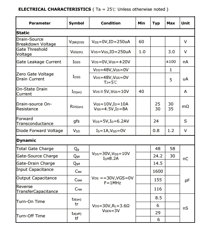 60V / 8.2A,RDS(ON)= 25毫欧(典型值)
