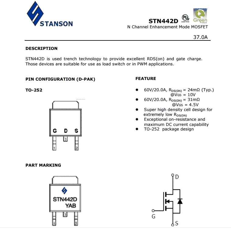 stn442d使用沟槽技术,提供优良的RDS(ON)和栅极电荷。