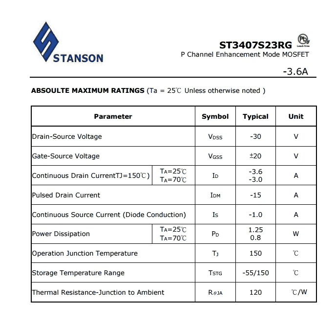 st3407srg是P沟道增强型功率场效应晶体管逻辑