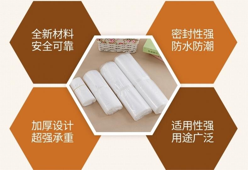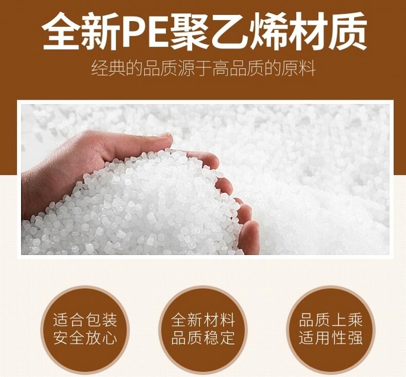 pe胶袋即聚乙烯塑料袋,是由HDPE(低压高密度)或LDPE(高压低密度)经由吹膜机吹出筒料,再经制袋机封口制袋而成的塑料包装袋,也可直接出售筒料由客户在使用时根据需要自行裁切封口。是乙烯进行加聚而成的高分子有机化合物。聚乙烯是世界上公认的环保材料。无毒、无味、无臭,符合食品包装卫生标准。聚乙烯薄膜,轻盈透明,具有防潮、抗氧、耐酸、耐碱、气密性一般,热封性优异等性能。PE胶袋根据使用的粒子不同可分为高压袋和低压袋,高压袋通常为10-200UM,主要用于工业生产中包装产品使用,低压袋一般为20-500UM,常用于垃圾袋或食品包装。 PE胶袋按制作工艺可分为平口袋、折边袋和方底袋:常用的是平口袋;折边袋(又称立体袋)是指在吹膜时将筒料的两边向内折入一定的尺寸后收卷制袋而成;方底袋底部为四方形、通常先根据袋子尺寸裁出相应片材再拼接而成,主要靠人工制作。 PE胶袋也可分为全新料和掺回料的:前者透明度较高、承受的拉力较强;后者透明度差、承受的拉力低且呈色灰暗。按是否印刷分为空白袋和印刷袋,印刷需制版(主要是凹版铜铁版),印几种颜色即需制几个版。普通的吹膜机可吹出宽度为2.5-120CM的筒料,超过1.2M的筒料要有专用的大型机器才可吹出。可添加各种色种做成各种颜色的袋子。PE胶袋广泛应用于汽车用品,塑料制品,文具,书本,电子,线路板,MP3,VCD,工艺品,相框等木制品,玩具,杀虫剂,日用品,食品,化妆品,罐装饮料,乳制品,医药,盒带及录像带等产品。