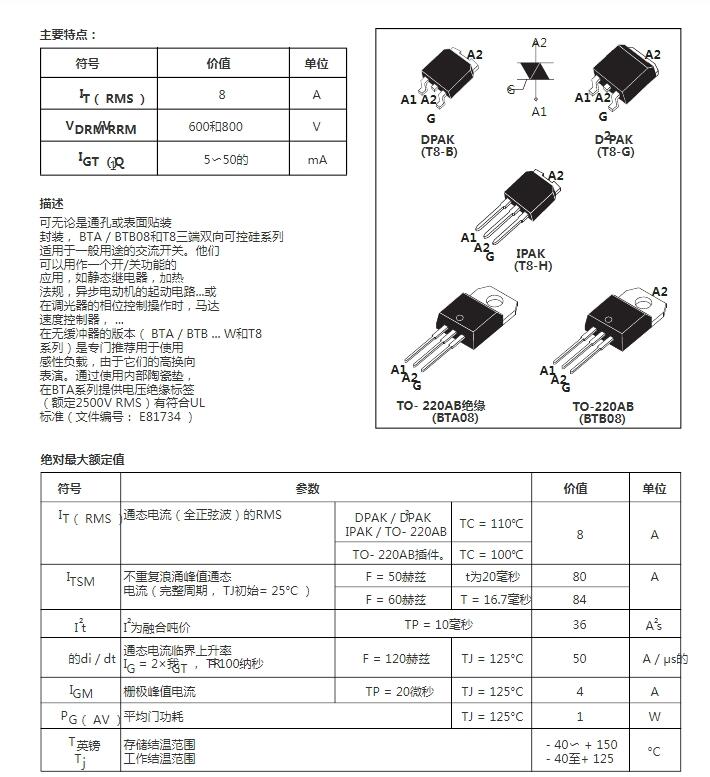 • 规格:BTA08-800