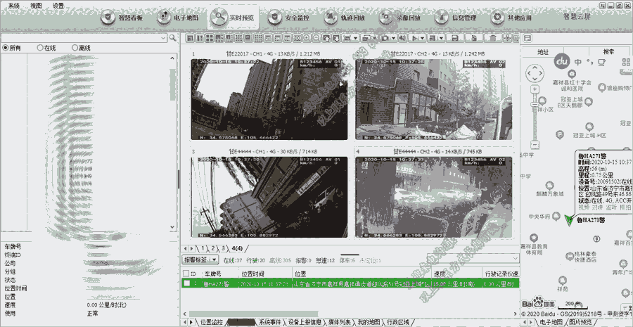 收运人员/车辆管理:在线监测车辆的位置、轨迹、速度、载重,实时调阅视频,可防止乱倒乱停、偏离规范录像、超速驾驶等违规行为;