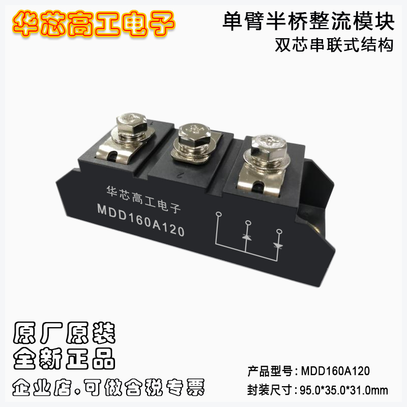 “页面标价非成交价,请联系详询报价”? ?sheier/希尔 全新原厂原装大功率三相整流桥模块:MDD160A160;正向电流:160A;反向峰值电压:1600V;正向压降:1.3V;浪涌电流:5500A;绝缘电压:3000V;尺寸体积:94*35*30cm;封装方式:大模块。