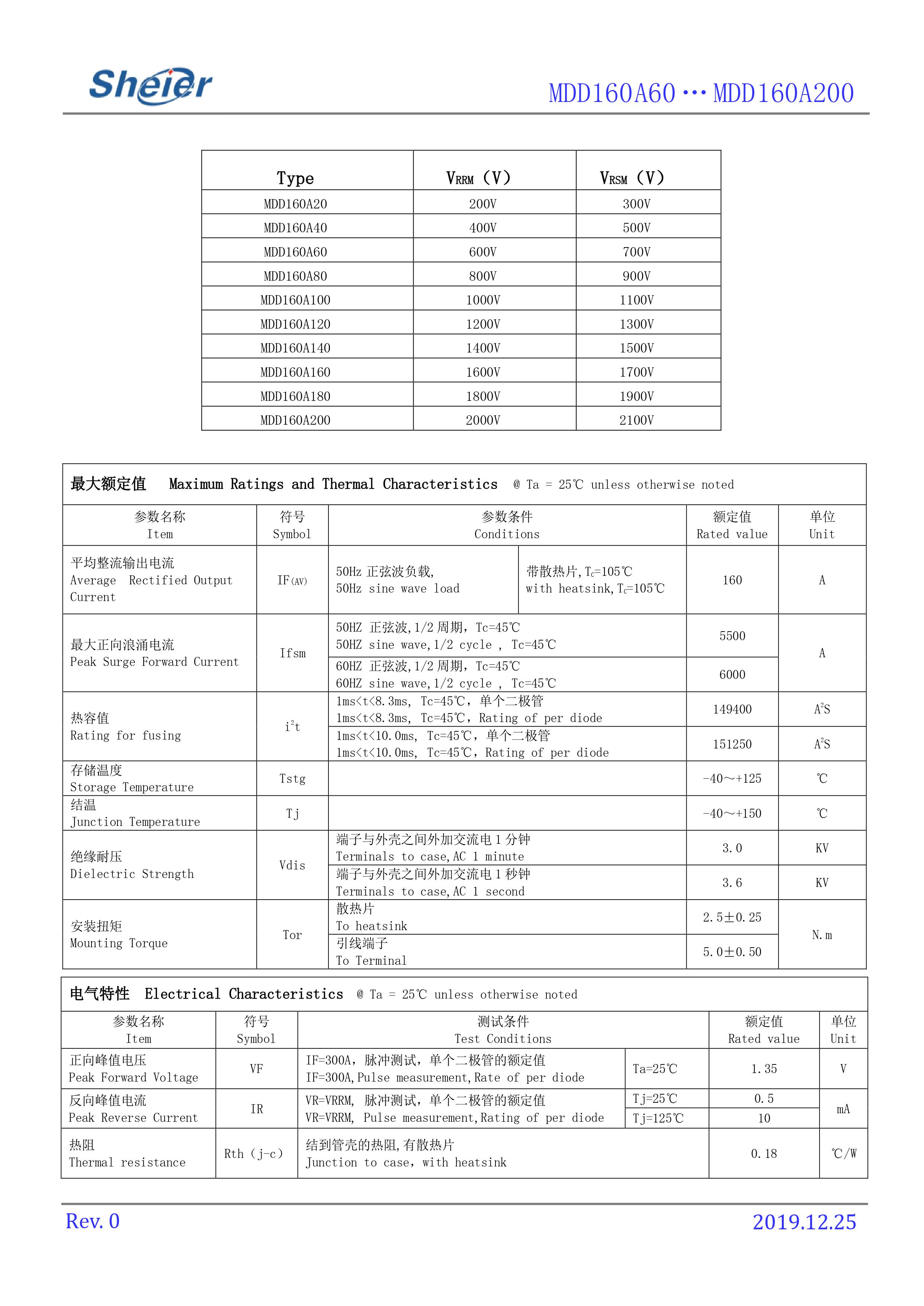 ? ? 通用于电源、电器、逆变器、电磁炉、电焊机、充电器、充电桩、工控装备、医疗设备、工业特种电源、高频电源、风光储新能源、伺服电机马达等产品电路作整流、开关等作用。大芯片高电压大电流分立式共阴极快恢复功率整流管MDD160A100;MDD160A120;MDD160A140;MDD160A160;MDD160A180;MDD160A200。