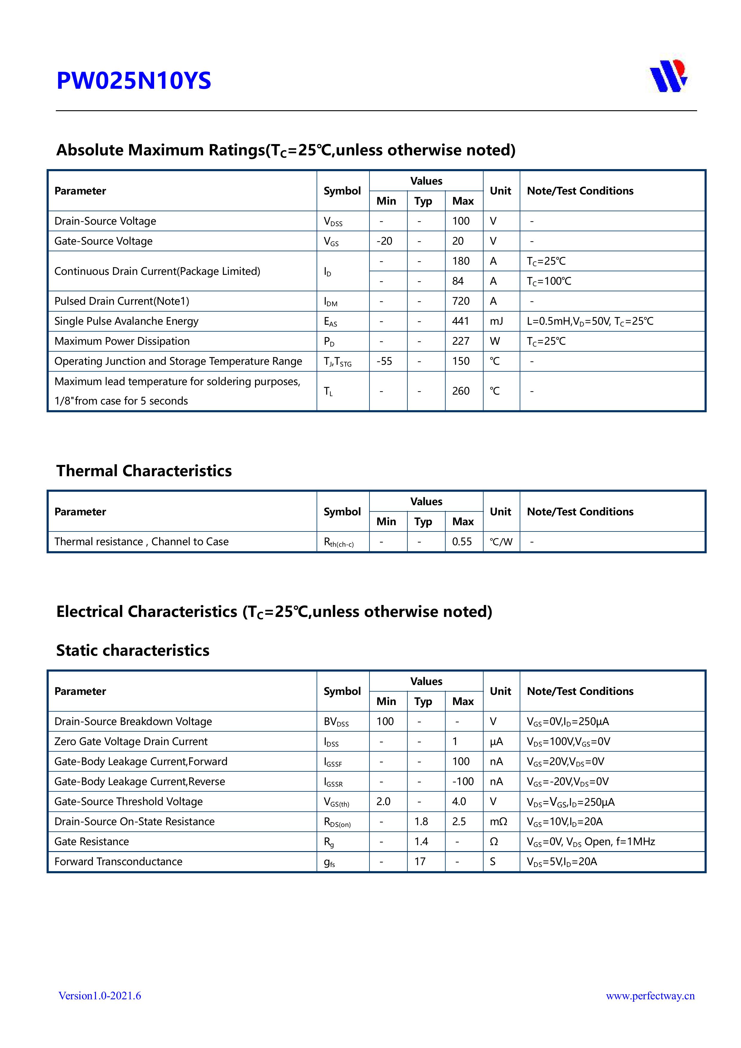 "页面标价非成交价,请联系详询报价” PY/平伟实业股份 全新原厂原装高频高压功率控制开关管场效应管,100V,180A,1.8mΩ,N-Channel,中低压MOSFET:PW025N10YS;电压Vds:100V;电流Id:180A;内阻Rds(on):1.8mΩ;封装方式:TO-247-3L;最小包装数量:600pcs/盒-管装。