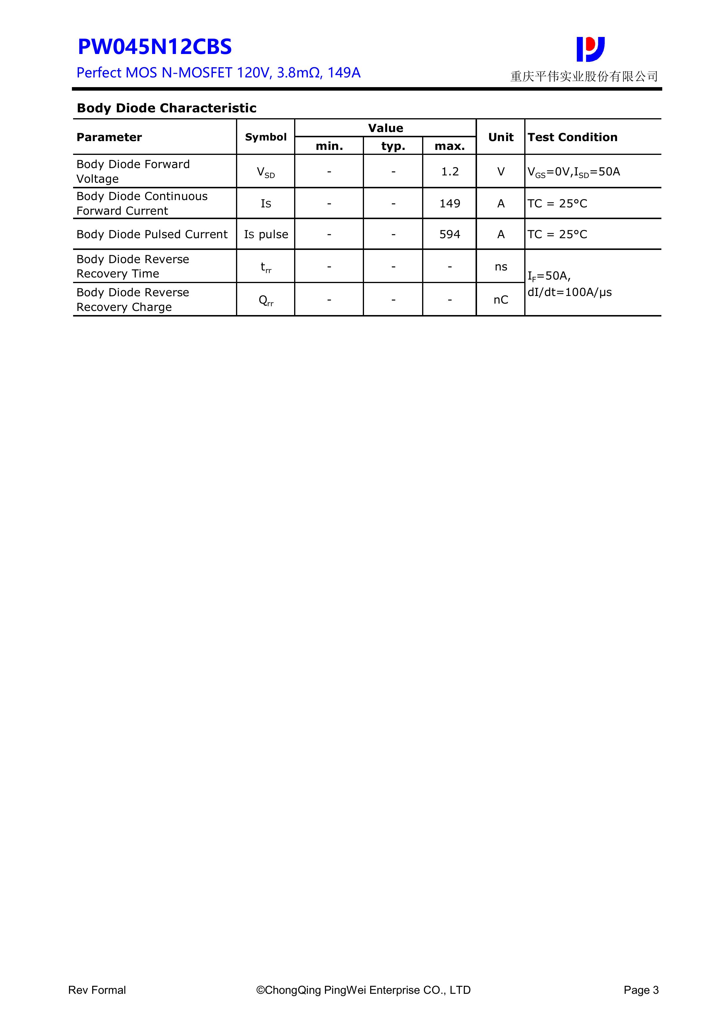 "页面标价非成交价,请联系详询报价” PY/重庆平伟实业 全新原厂原装高频中低压功率控制开关管N型沟道场效应管,120V,149A,3.8mΩ,N-Channel,贴片式中低压MOSFET:PW045N12CBS;电压Vds:120V;电流Id:149A;内阻Rds(on):3.8mΩ;封装方式:TO-263-2L;最小包装数量:800pcs/盘-编带。