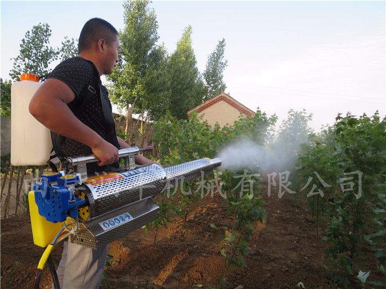 配比方法:先将扩散剂与柴油按1:15的比例进行勾兑(柴油用量占药箱总容量的10-20%),烟雾的浓度按加水量与柴油用量比例进行调节,加入10%药箱容量的农药,加入70-80%药箱容量的水,调和均匀后使用。四川新款弥雾机|四川喷雾弥雾机型号(必看)四川新款弥雾机|四川喷雾弥雾机型号(必看) 烟雾水雾两用弥雾机,机器药箱加入烟雾助剂(或柴油)喷出来的烟雾,加入烟雾剂越多烟雾量越大,烟雾打药快,扩散面积广!不加入烟雾剂直接使用兑好的药液打药,喷出来的水雾。水雾会受到温度和湿度的影响,水雾最适宜的打药时间是早晨和傍晚。温度越低,湿度越大,水雾的雾化效果就越好!阴云天气及日出前后打药水雾的雾化效果最佳!