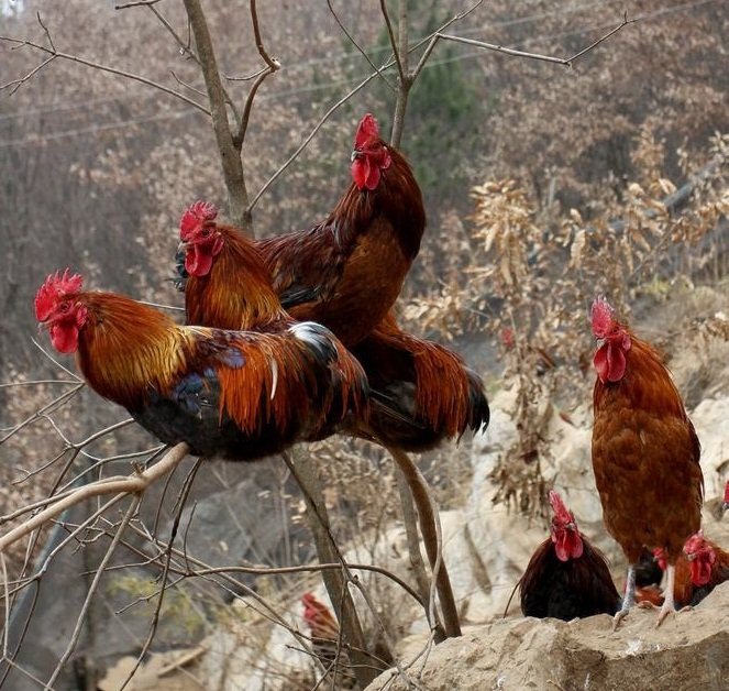尾巴油亮黑色带绿,体态雄威矫健好看、鸡冠大而且红艳,鸡腿细高适中、腰深尾长,公鸡生长速度比较快,料肉比好。笨鸡饲养肉质好、味道鲜美,营养丰富。