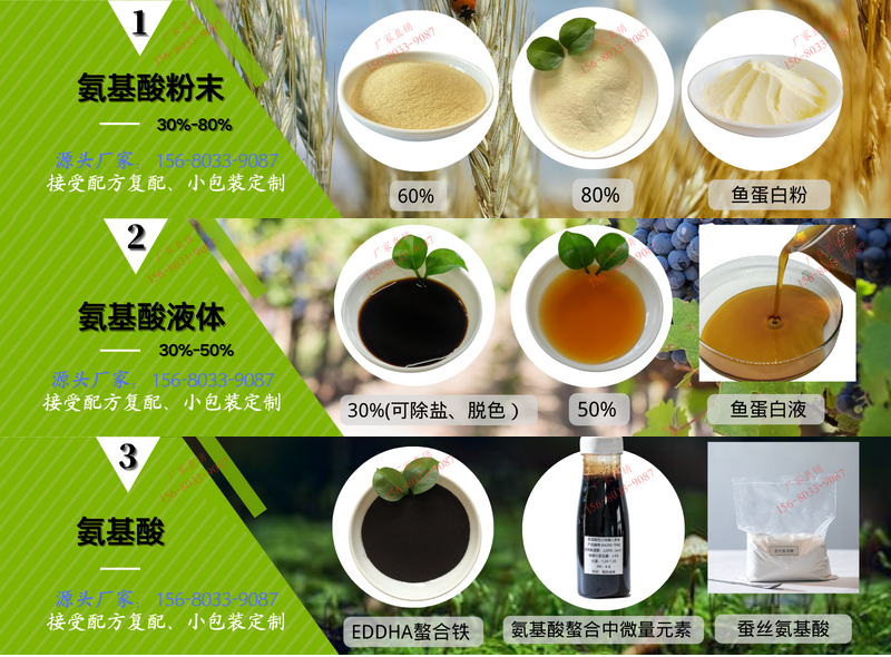 氨基酸螯合物:氨基酸螯合款矿物元素铁、锌、锰、铜、硼、钼、镁、钙等,液体粉剂性状