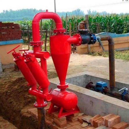 这种过滤器安装在井及泵站旁,最适应于分离水中含有的大量沙子及石块,在满足过滤要求的条件下,分离60-150目砂石的能力可达到92-98%。它一般不单独使用,而只是作为过滤系统的前段过滤。常用的组合方式有离心-网式组合,离心-砂石-网式组合。
