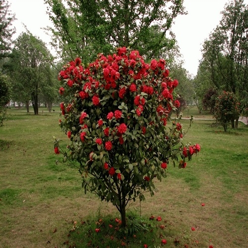 茶花:又名山茶花,是山茶科、山茶属多种植物和园艺品种的通称。花瓣为碗形,分单瓣或重瓣,单瓣茶花多为原始花种,重瓣茶花的花瓣可多达60片。茶花有不同程度的红、紫、白、黄各色花种,甚至还有彩色斑纹茶花,而花枝高可以达到4米。性喜温暖、湿润的环境。花期较长,从10月份到翌年5月份都有开放,盛花期通常在1-3月份。