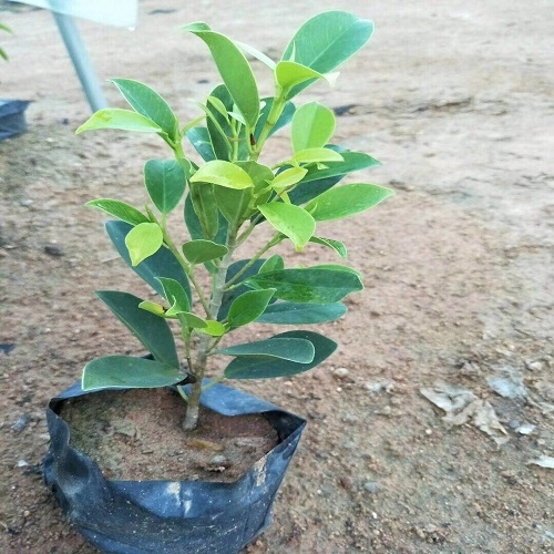 黄金榕袋苗:又名金叶榕,桑科榕属,常绿灌木,耐热、湿、贫瘠但不耐阴,观叶、盆景树种。分蘖能力强,叶色金黄亮丽,易造型,园林应用广泛,常作行道树、园景树、绿篱树。黄金榕名字的由来是因为叶子是黄金绿色的。常绿乔木或灌木,高达25m,树冠阔伞形,宽幅可达30m。单叶互生,倒卵形枝至椭圆形,长4-10cm,革质,全缘。花单性,隐头花序。果实球形,熟时红色。