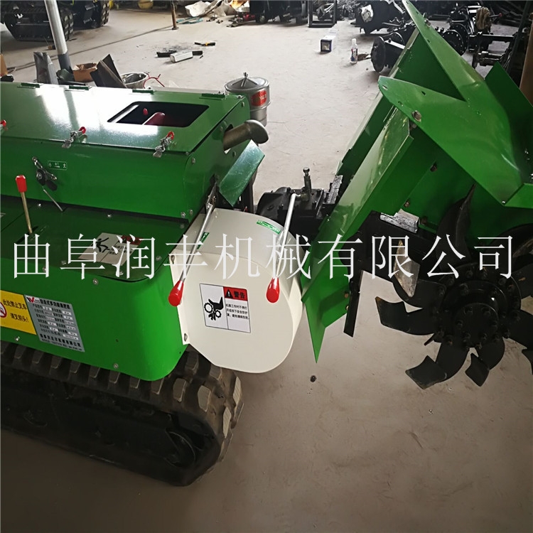 多功能 履带式开沟施肥机安装上不同的配件可以进行单独旋耕、回填、单独开沟、施肥、也可混合搭配使用。产品结实,性能优越,操作方便.:机身加厚,密,履带式行走,可进行原地转向。刀具都是加厚75号猛钢锻造,非常耐磨,工作效率高.
