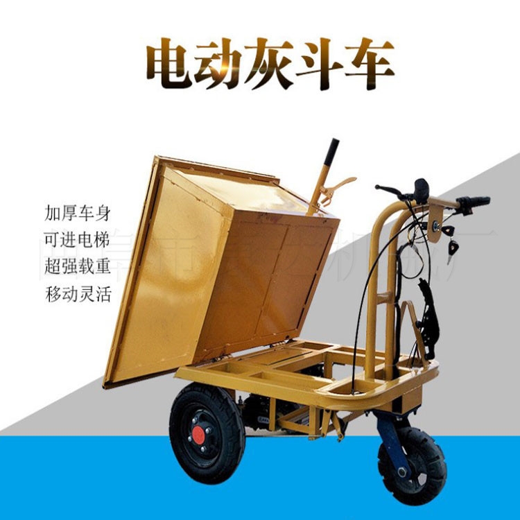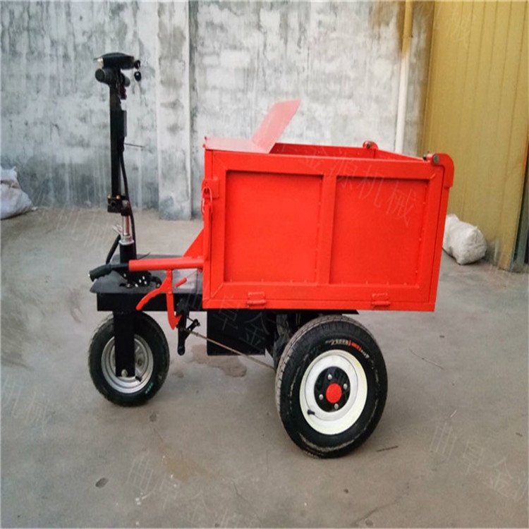 电动手推工程翻斗车以往在建筑工地上都是靠人力来推动手推车。现在改用了电力,一辆车配有48v的电瓶。一天耗能也就五块钱电费,告别了过去用人力推车,比较费力,现在人来控制方向车子自动行驶,爬坡能力强,路面不平的地方也可操作。省时又省力很适合在建筑工地,小型场地使用手掀自卸翻斗,速度快节省人工,简便环保,经济耐用。此款车适用于建筑工地、室内装修、养殖场、工厂等场所,运输沙子、水泥、土方、混凝土、建筑垃圾生活垃圾、养殖场动物粪便、饲料等,体积小操作简单灵活,可原地360度转圈,可进入楼层、楼道、电梯、吊篮等各种狭小空间作业,是您必不可少的装卸助手。