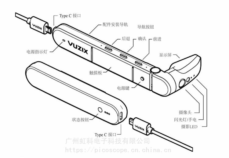 135mAh内置电池支持外部电池的热插拔带,3LED指示灯的1000 mAh头戴式USB-C外部电池,可以由第三方USB电池组代替头戴式电池供电