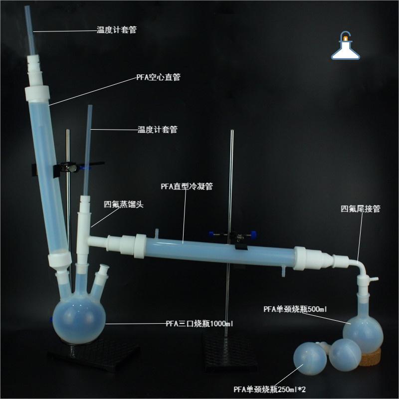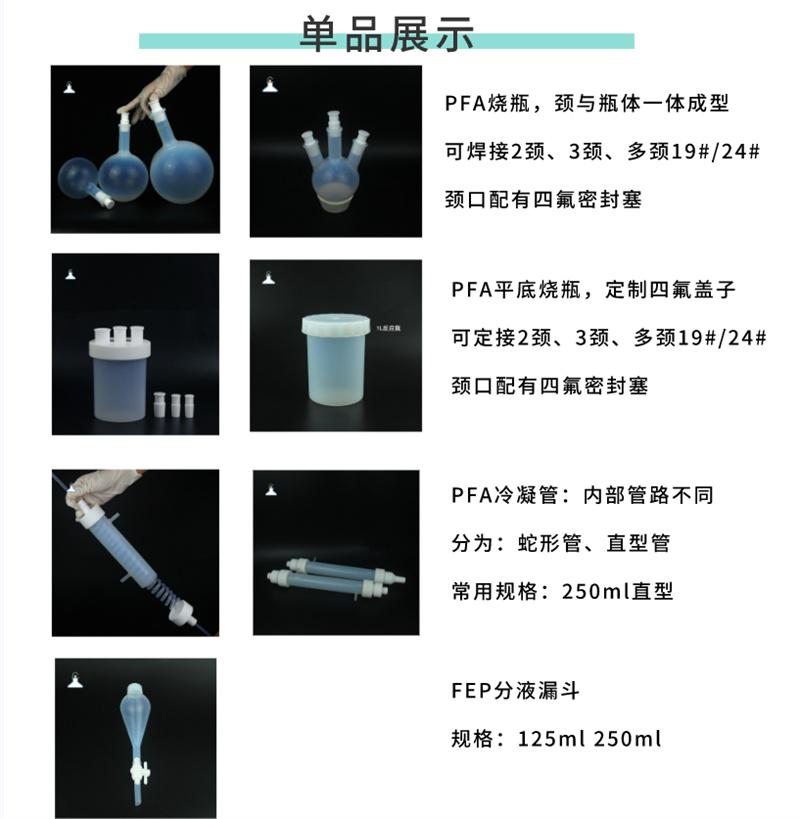 PFA透明四氟三颈圆底烧瓶耐氟化氢冷凝收集瓶装置