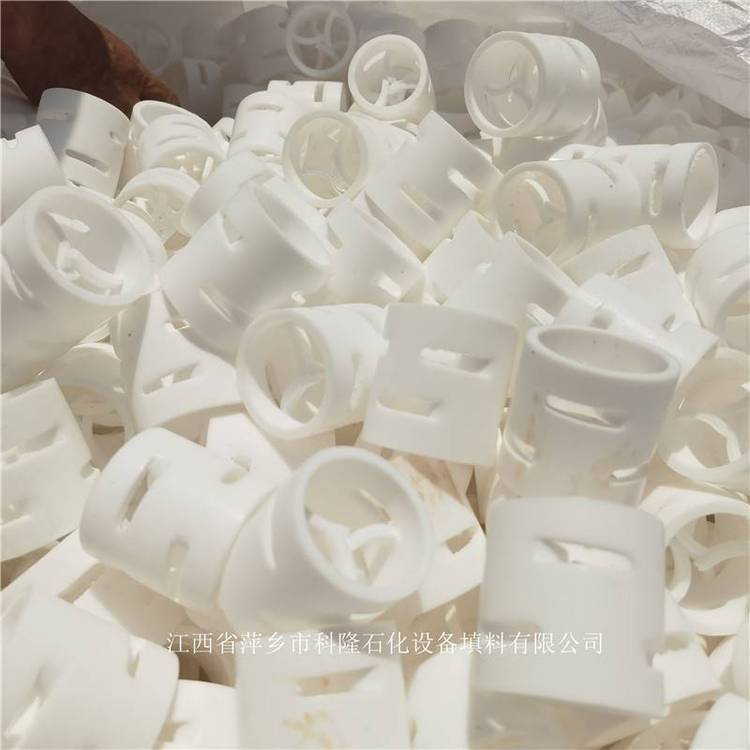 ?四氟鲍尔环, 鲍尔环特点:具有低压降,通量大, ,液体分布好等特点,我公司新开发的 鲍尔环可耐250度高温下不压扁,并能 气液介质的通畅。?