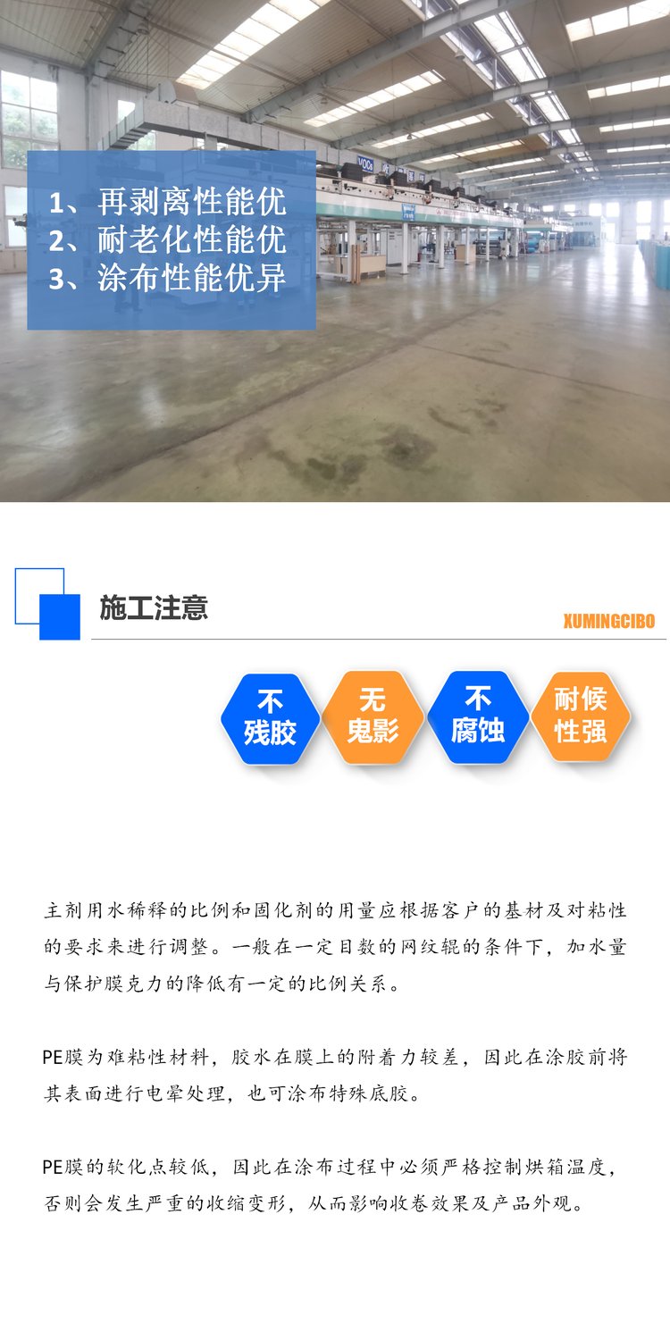 旭铭赐博pe保护膜胶水不腐蚀无鬼影中高粘水胶