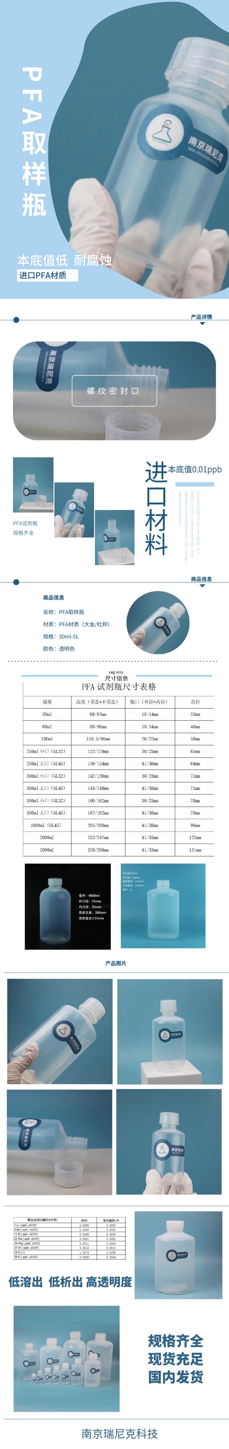 PFA取样瓶:也叫可溶性聚四氟乙烯取样瓶,特氟龙试剂瓶,取样瓶等。