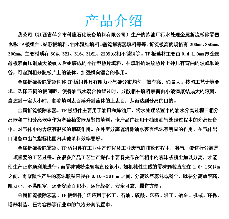 品名 | 折流板 TP板组 蛇形板波纹 | ||