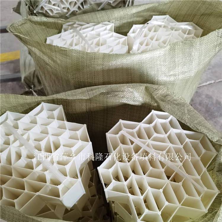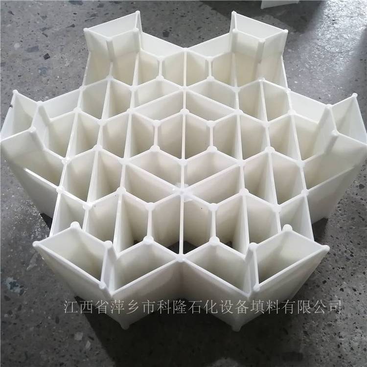 6、 瓷塑填料六角内棱环-2填料具有比表面积大,空隙率大,处理能力高,压降低,传质 ,抗堵塞能力强等优点。