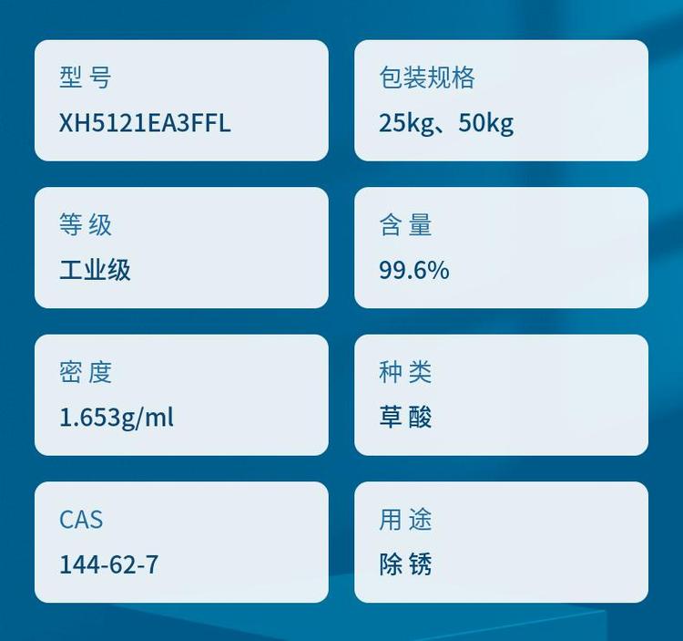 草酸 CAS多 执行质量标准GB/T1626-2008 工业级 除锈 含量99.6 品牌 | 其他 | ||