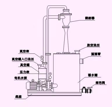 是利用液体或气体的高速喷射产生负压来达到抽吸真空的目的。
